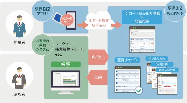 本サービスは、当社乗り換えエンジンを活用した従来の「運賃検索機能」、「定期代及び定期払い戻し代検索機能」、「定期区間登録及び定期区間運賃控除機能」等に加え、新たにSuica、PASMO等の交通系ICカードに蓄積された電車、バスの乗車履歴データを当社が特許を取得した独自技術により解析、加工することで、交通費精算業務を大幅に効率化できる業務用ソリューションサービスです。