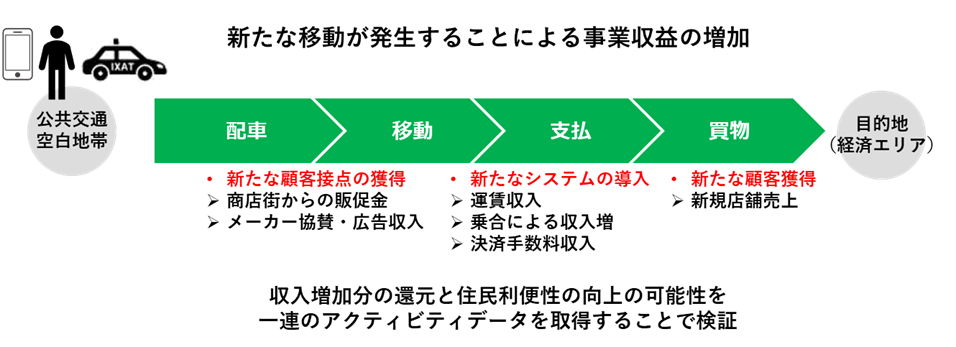 また、移動サービスを単なる交通手段と考えるだけではなく「新たな価値の創出」の機会ととらえて、その過程で得た新たな収益を循環させるモデルを検討することで、本サービスの利便性のさらなる向上を目指します。